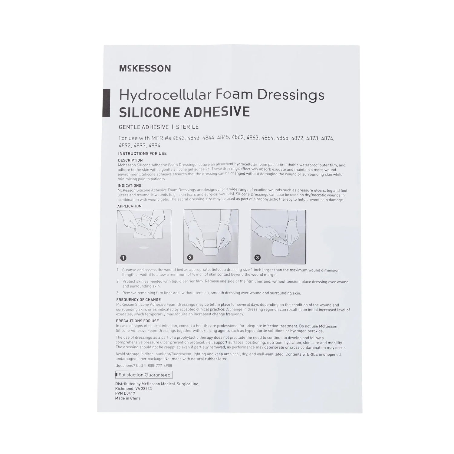 - Designed to affix to dry, intact skin to maintain a moist wound environment and promote healingOuter film layer is breathable while remaining resistant to bacteria and moisture infiltration.Inner hydrocellular foam pad is absorbent.Seals the wound margins to help prevent exudate from leaking on surrounding tissueHighly conformable to fit on body's contoursPerforated silicone gel adhesive minimizes pain and trauma to wounds upon removal.Dressing can be lifted and repositioned without losing its adherent properties.4 x 4 inch foam dressing has a 2.6 x 2.6 inch pad.