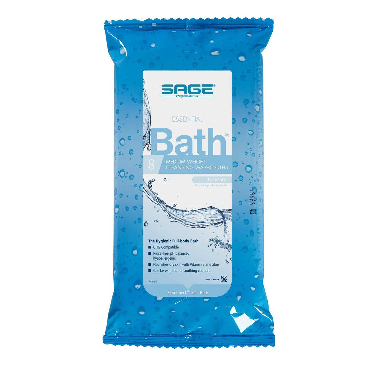 - These Sage Products bath cleansing washcloths are pre-moistened, hypoallergenic and pH balancedThey have a rinse-free formula made with vitamin E and aloe vera A hygienic and safer way to bathe without using a tub or showerThese Sage Products bath wipes are CHG compatibleThey're soft with a medium thicknessThe eight pack contains enough for a full-body bathYou can warm these Sage Essential Bath wipes in the microwave